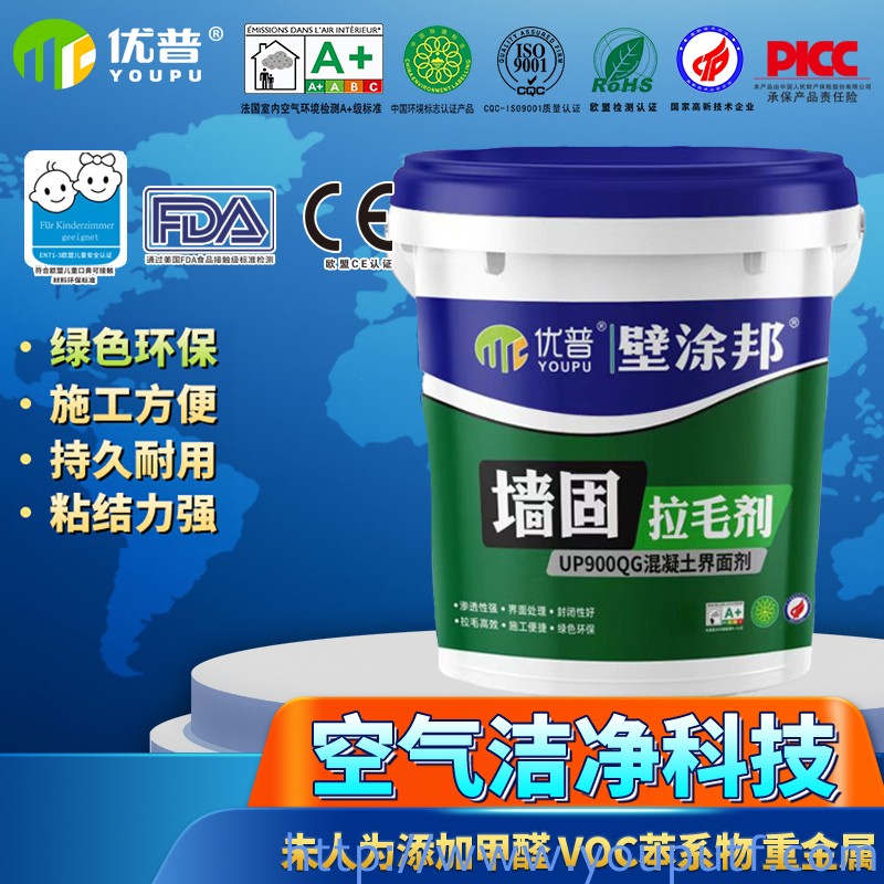 優(yōu)普壁涂邦墻固拉毛劑是一種由聚合物乳液、水溶性膠體、多功能助劑組成的全新環(huán)保新型墻面加固產(chǎn)品。本產(chǎn)品具有封閉效果好、滲透性強(qiáng)、拉毛強(qiáng)度超高等特點(diǎn)。該產(chǎn)品與水泥混合可對(duì)光滑墻面進(jìn)行人工造毛提高膩?zhàn)踊蚧覞{與基層的粘結(jié)力。